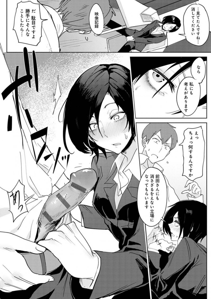 【少年漫画】監視カメラがあることを知らず職場でオナニーをしてしまったバリキャリOL…ちょうどその様子を見てしまった男性社員に映像を消してもらうようチンポにご奉仕!【腐蝕】