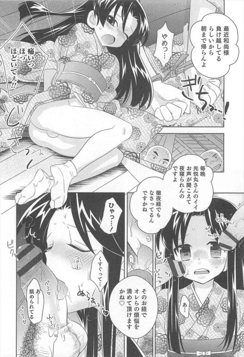 【エロ漫画】変態和尚の性欲処理のために寺に住んでいる美少女男の娘が、和尚の留守中に童貞僧侶たちに襲われてめちゃくちゃに集団レイプされてしまう!